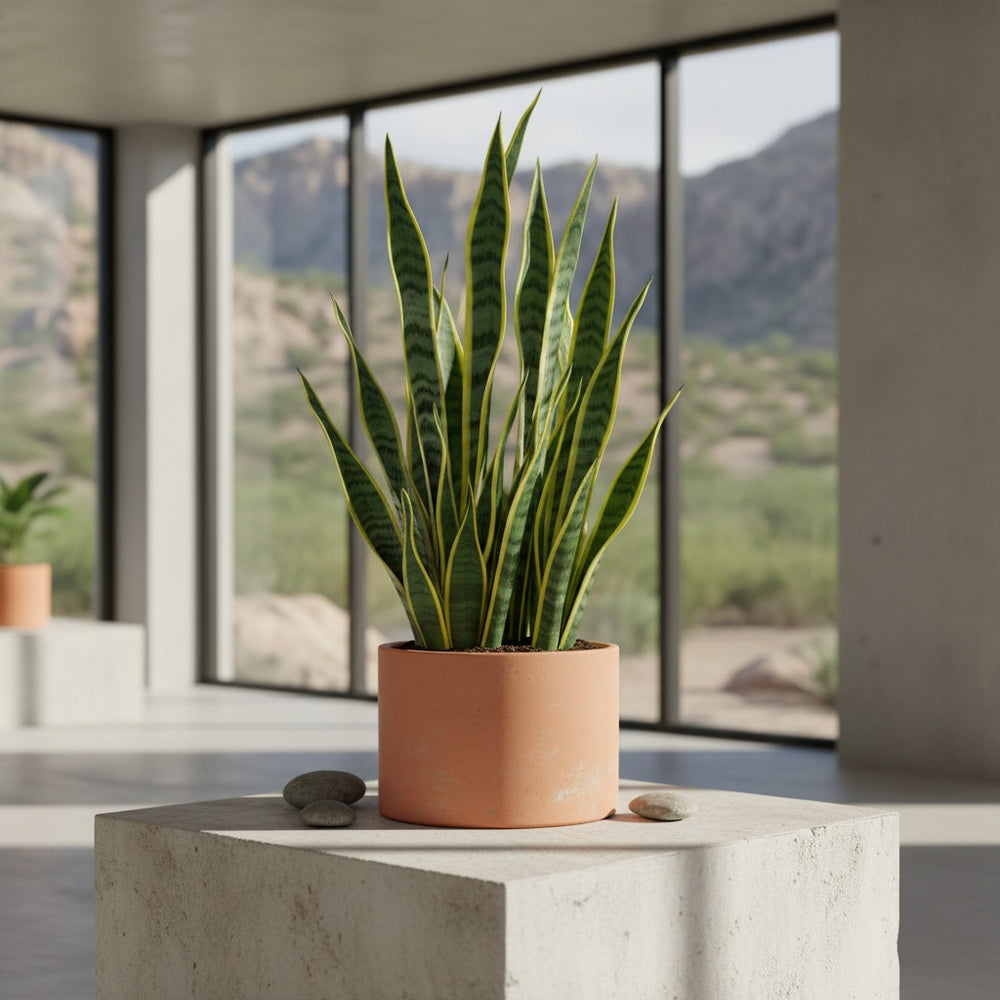 Alors que de nombreuses plantes d'intérieur exigent une place près d'une fenêtre ensoleillée, le Sansevieria est beaucoup plus tolérant. Bien qu'il s'épanouisse dans une lumière vive et indirecte, il s'accommode parfaitement d'un emplacement avec peu de lumière. Un couloir, un bureau ou une salle de bain peu éclairée ? Il y trouvera sa place sans se plaindre, se contentant de pousser un peu plus lentement.