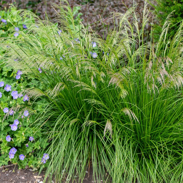 Pour maintenir vos graminées en bonne santé, assurez-vous qu'elles reçoivent suffisamment d'eau, notamment durant les périodes sèches. Un engrais à libération lente est recommandé pour éviter une fertilisation excessive. Taillez-les au besoin pour conserver leur forme et éliminez régulièrement les mauvaises herbes.